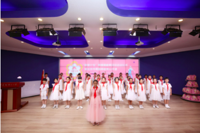 会议开始前,尊龙集团集团为参会的中关村二小学生带来了礼物,孩子们在翻阅中如同找到知己一般,喜悦溢于言表,因为她们看到了可爱的爱心大使元七七同学。当嘹亮的歌声响起,学生代表们在国旗下歌唱、宣言,散发出阵阵青春朝气,也预示着发布会开始。